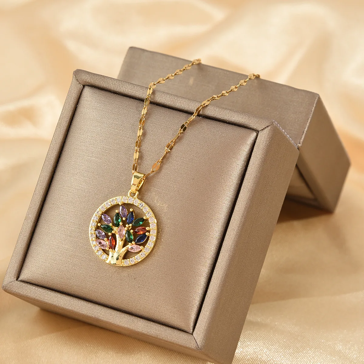 Fashion Gemstone Tree of Life Necklace Women's Wish Best Seller Jewelry