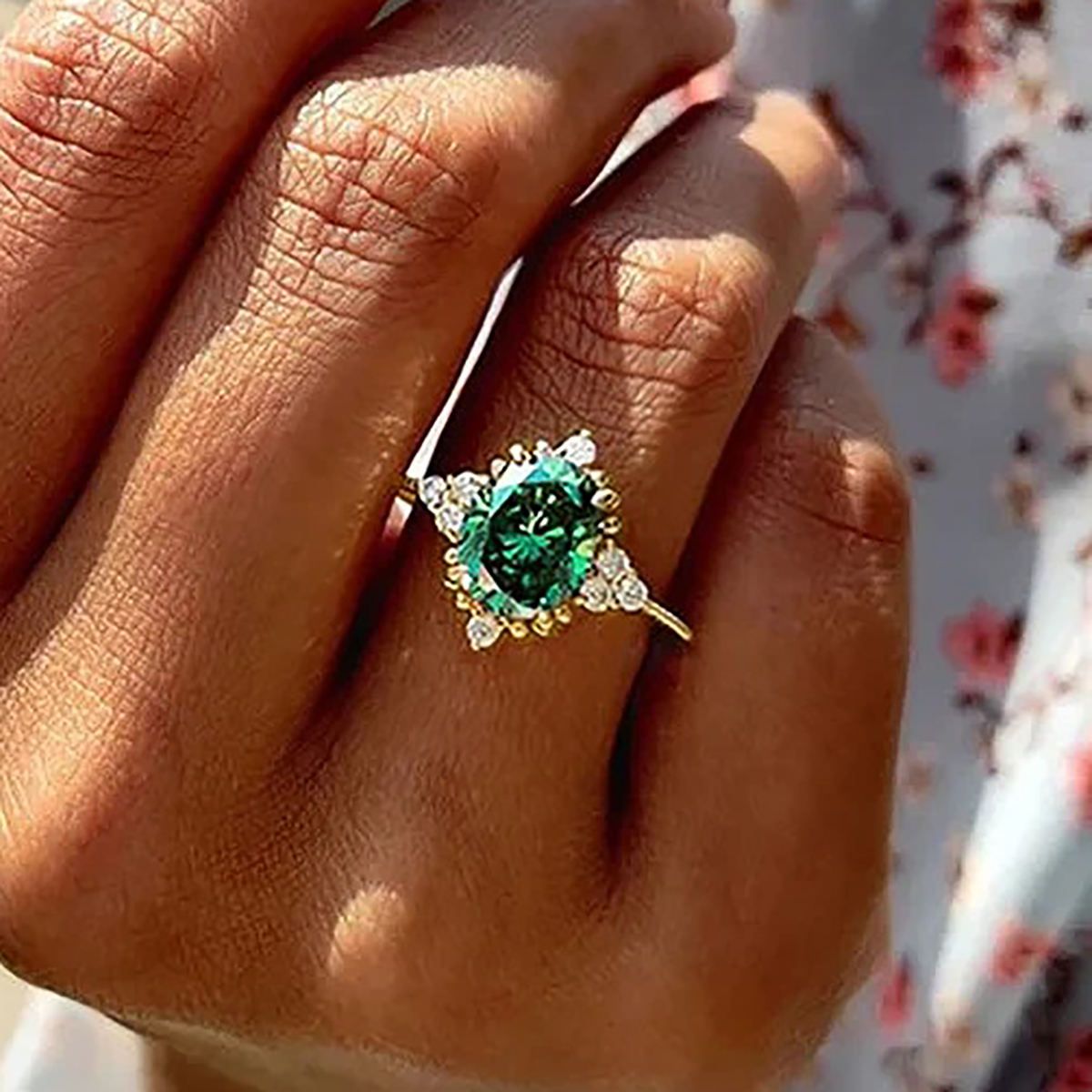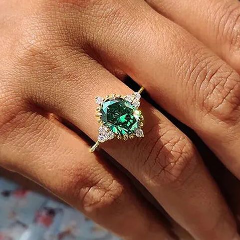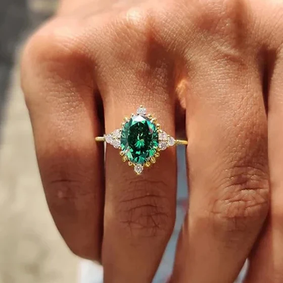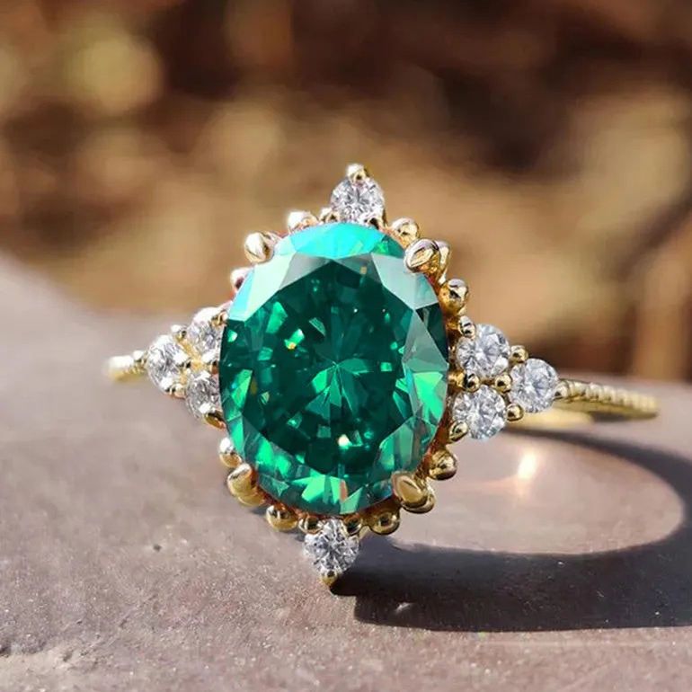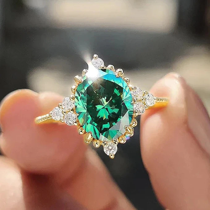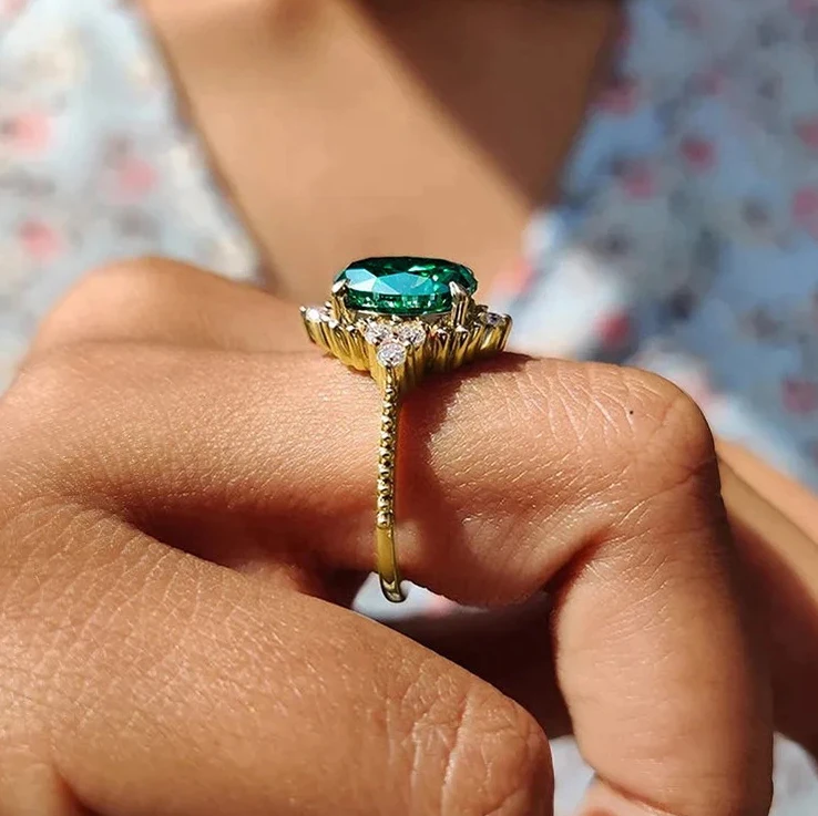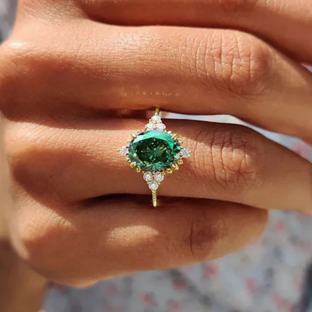 Exquisite geometric design oval green zircon vintage women's ring
